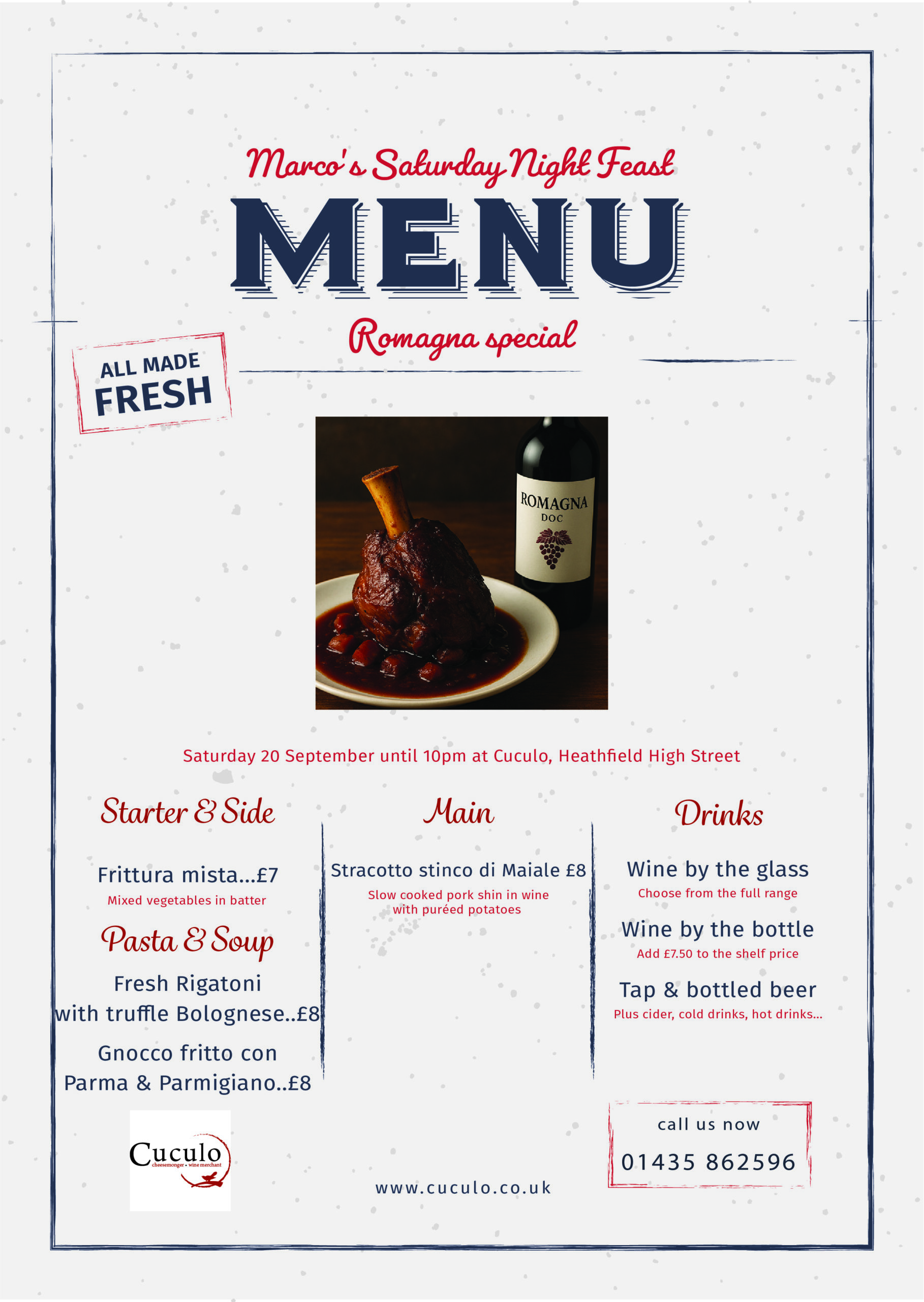 Marco’s Saturday Night Feast at Cuculo – Cucina Romagnola, 20 September 2025